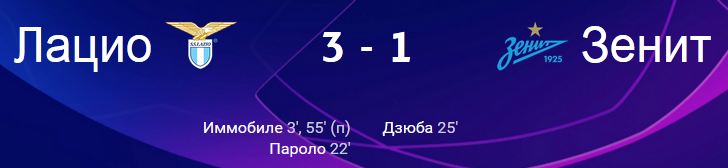 Лацио (Италия) – Зенит (Россия)4-0